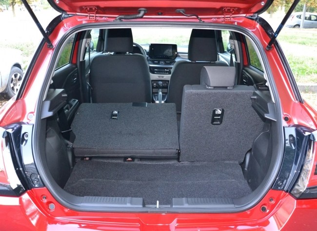 Об'єм багажника Suzuki Swift достатній для міського авто: 265 л у звичайному стані і 980 л - зі складеними задніми кріслами. Висота порогу невелика, тому завантажувати речі зручно. Під підлогою схована запаска-докатка.